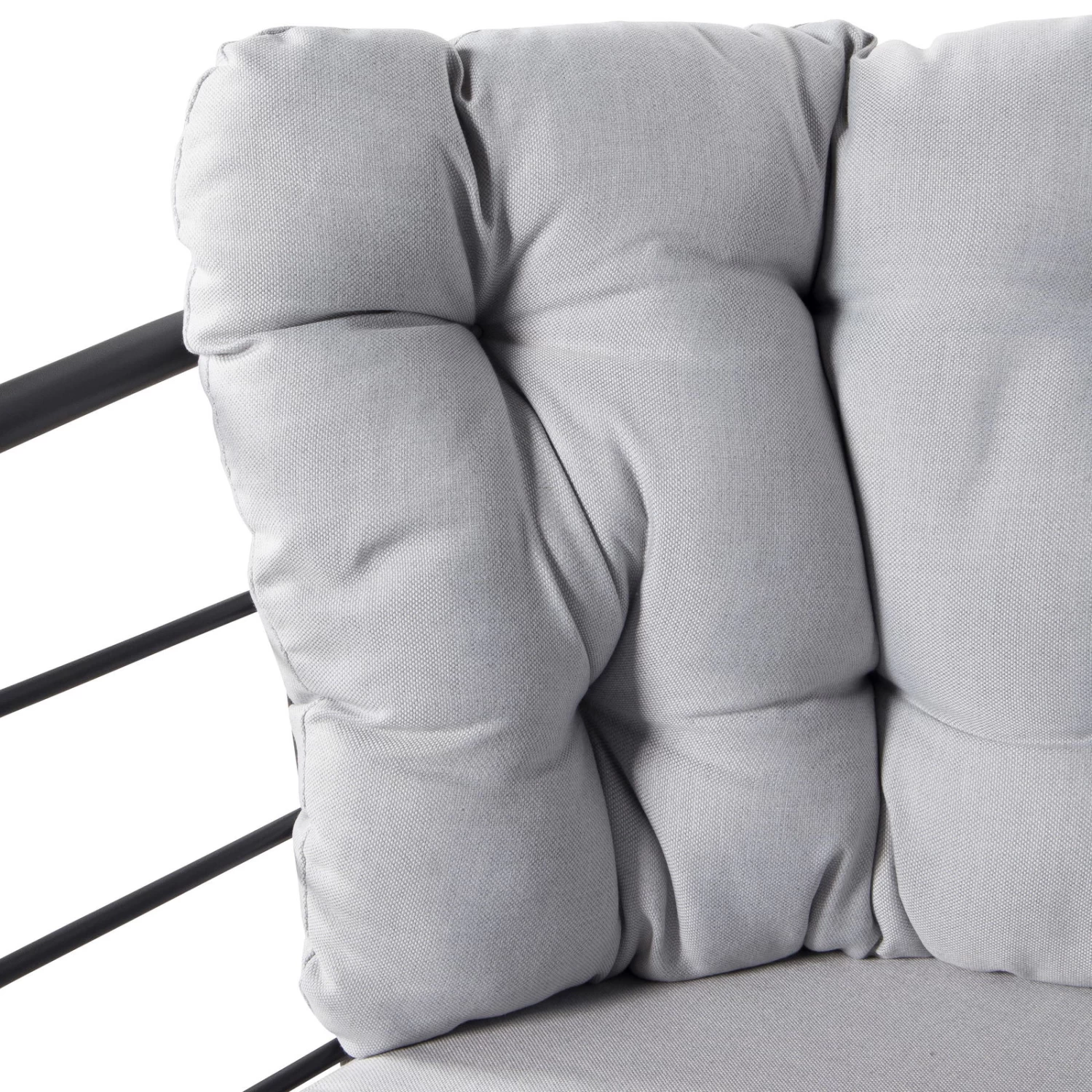 Die Alu-Loungegruppe ‚Bella‘ hilft Ihnen, Ihre Sitz- und Dining-Landschaft im Outdoorbereich mit maximalem Komfort zu gestalten. Diese Loungegruppe überzeugt durch stabiles und leichtes Gestell aus Aluminium in der Farbe Schwarz und weich gepolsterte Auflagen in Grau, die im Lieferumfang bereits inklusive sind.