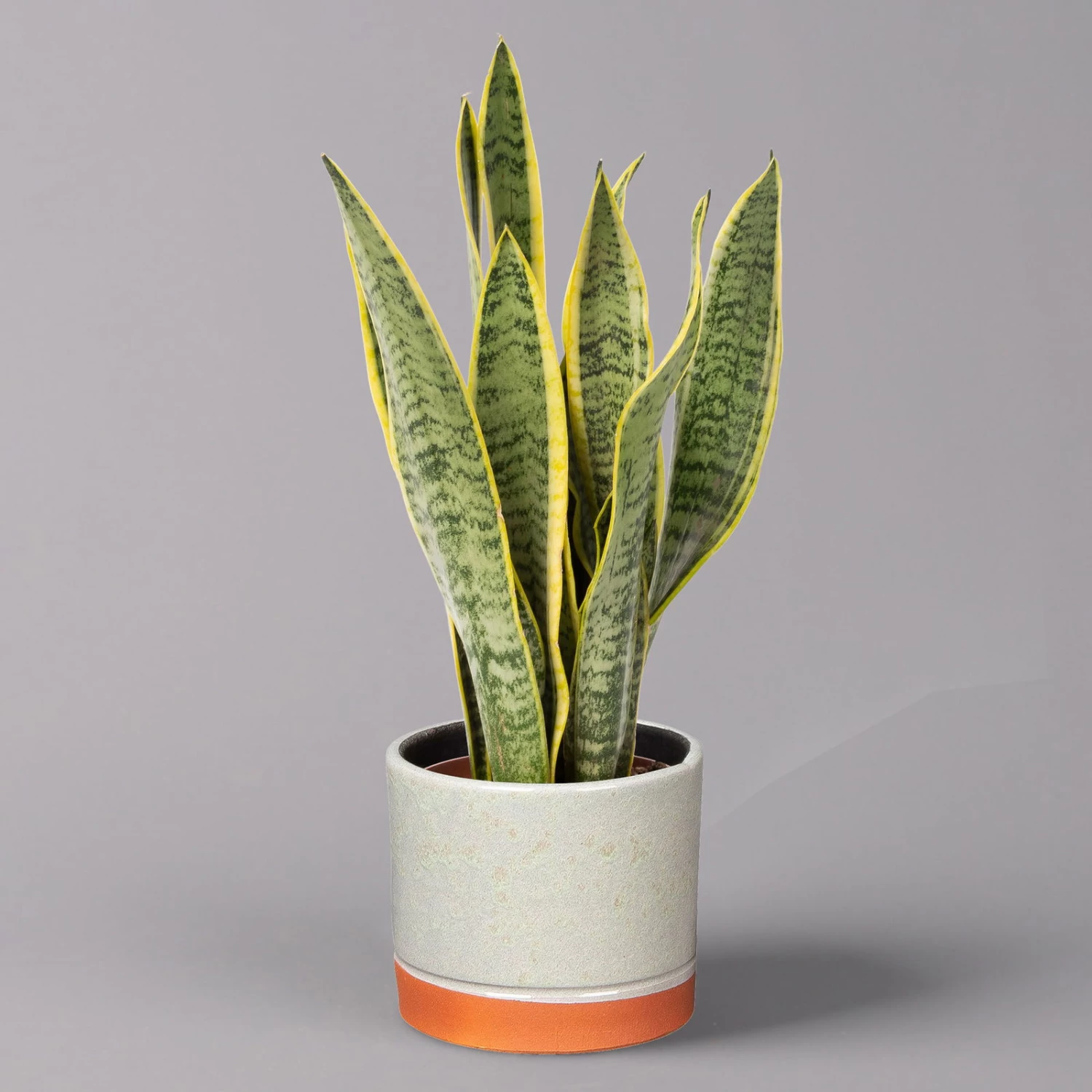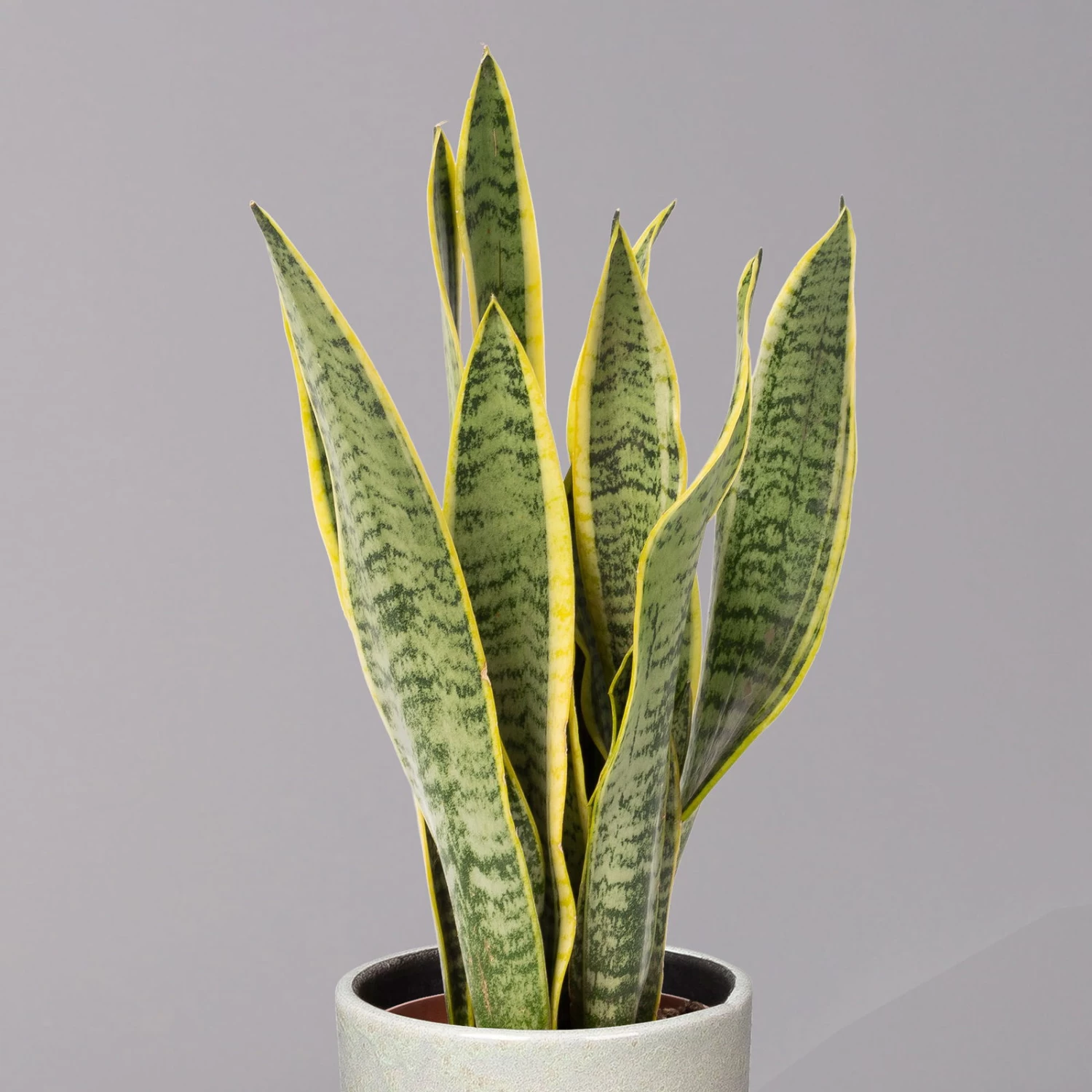 Der Bogenhanf (Sansevieria trifasciata ‚Laurentii‘) gilt als eine der robustesten und pflegeleichtesten Zimmerpflanzen überhaupt und ist auch unter den Namen ‚Sansevierie‘ oder ‚Schwiegermutterzunge‘ bekannt. Charakteristisch sind die riemenartig festen, fleischigen Blätter, deren Blattränder beidseitig gelbe Querstreifen aufweisen. Die grundständigen Blätter entspringen einem Rhizom und enden aufrecht in einer Spitze. Bei guter Pflege kann der Bogenhanf über einen Meter hoch werden.