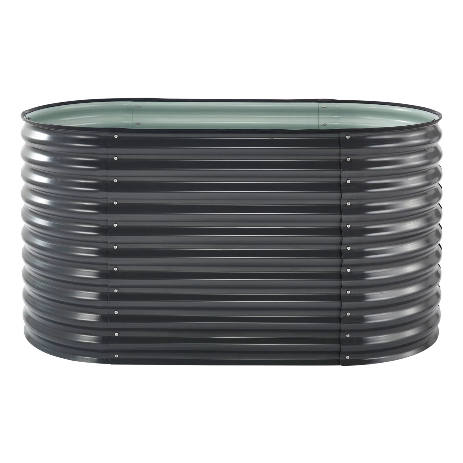 Jetzt können Sie Ihre Gewürzkräuter und farbenfrohe Blumen mit Stil und Komfort ziehen. Das ovale Hochbeet aus gewelltem Stahlblech überzeugt mit seiner rückenschonenden Höhe und mit praktischem Kantenschutz gegen Verletzungen.