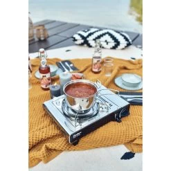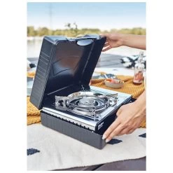 Der Kartuschenkocher ‚Nelson‘ von Enders ist Ihr leistungsstarker Begleiter beim Camping oder eine vielseitige Outdoor-Kochstelle im Schrebergarten. Der 2,2 Kilowatt starke Brenner ist stufenlos einstellbar, der Topfrost und das Gehäuse bestehen aus strapazierfähigem Edelstahl und um die Sicherheit kümmern sich der Überhitzungsschutz und die Überdruck-Sicherheitsabschaltung. Für bequemen Transport sorgt ein mitgelieferter Koffer.