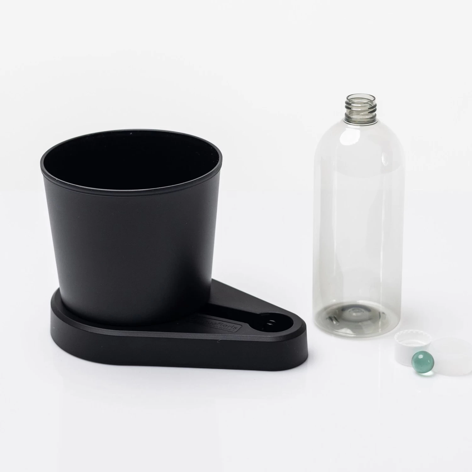 Dieses raffinierte Pflanzgefäß versorgt Ihre Zierpflanzen oder Küchenkräuter mit Wasser und benötigt dabei weder einen Stromanschluss noch Batterien. Der Küchenheld in stilvollem Schwarz gibt die Feuchtigkeit in ausreichenden Mengen direkt an die Wurzeln ab, wobei Sie den Wasserstand jederzeit einsehen und den Behälter nachfüllen können.