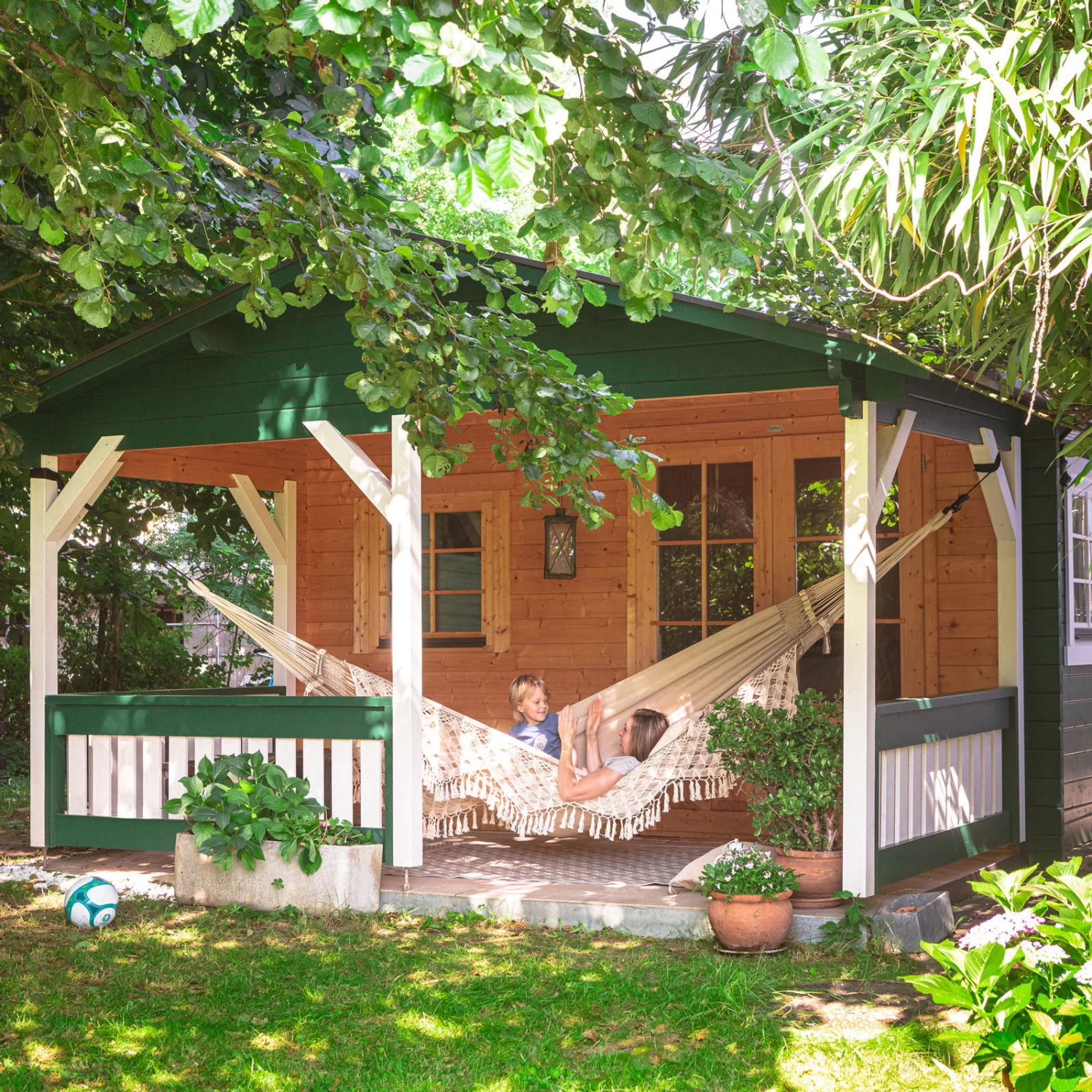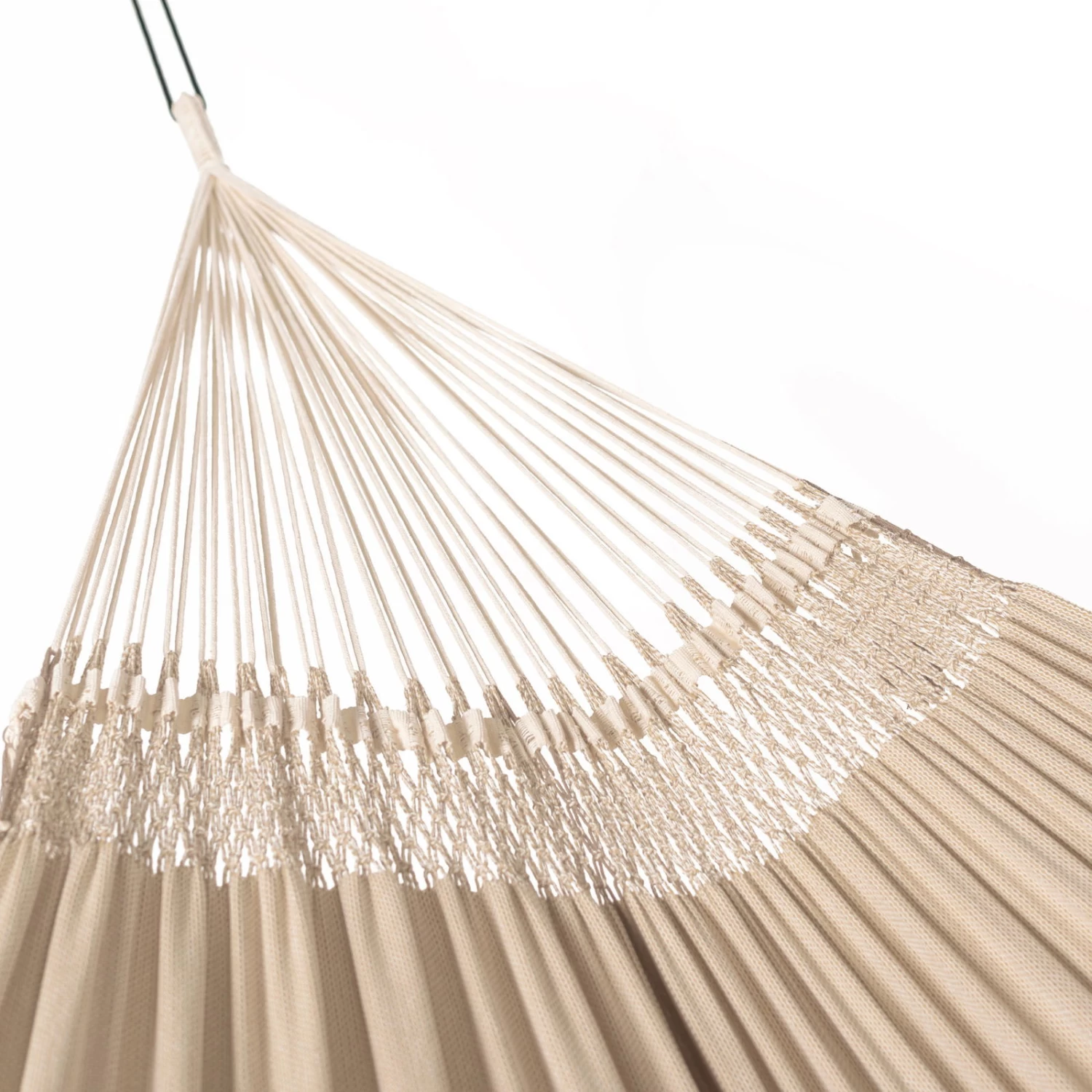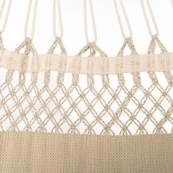 Mit einer komfortablen Größe von 180 x 400 x 180 cm ist die beigefarbene Kingsize Hängematte ‚Bossanova‘ ein idealer Erholungsort für die ganze Familie. Sie ist aus Bio-Baumwolle gefertigt und mit reißfesten Webkanten versehen. Deshalb hat sie eine hohe Belastbarkeit von 200 kg. Freuen Sie sich auf entspannende Stunden!