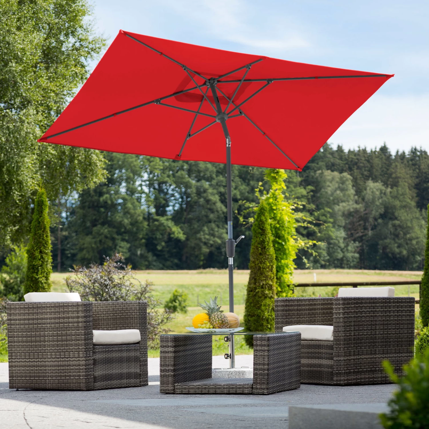 Nur ein paar Handgriffe – und Sie genießen wohligen Schatten an einem glühend heißen Sommertag. Der Sonnenschirm TUNIS von Schneider lässt sich mühelos aufspannen und an den aktuellen Sonnenstand anpassen. Sie brauchen nur noch einen passenden, rund 50 Kilogramm schweren Sockel. Ein weiterer Pluspunkt ist die wasserabweisende, imprägnierte und pflegeleichte Bespannung aus Polyester.