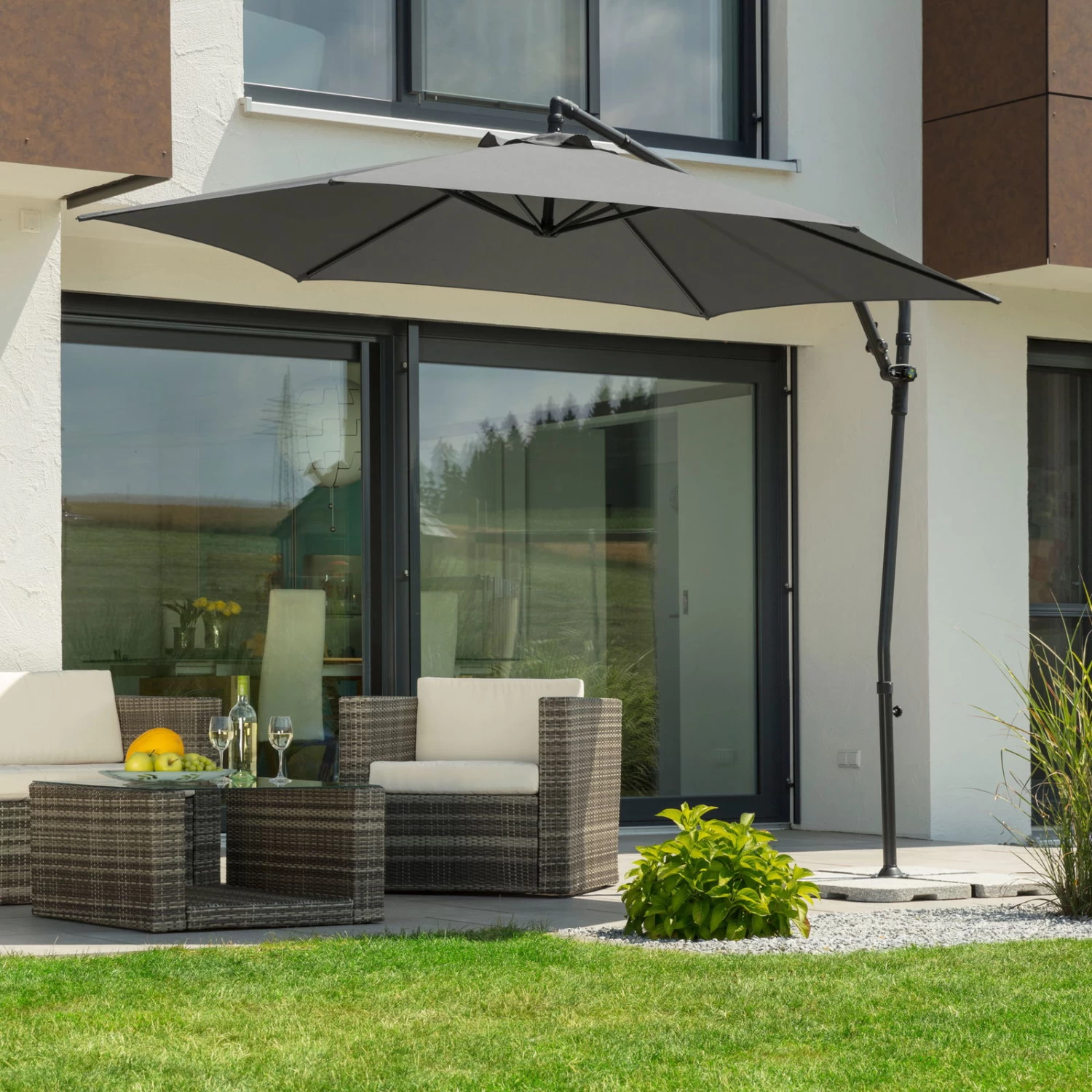 Der runde Ampelschirm GENUA besticht durch seine stilvolle Optik und ein hohes Maß an Flexibilität. Je nach Bedarf passen Sie den Pendelschirm mehrdimensional dem Sonnenstand an, damit Sie zu jeder Tageszeit Ihre schattige Oase genießen können. Zu den Vorteilen des Sonnenschirms GENUA gehört unter anderem eine langlebige und pflegeleichte Bespannung aus Polyester.