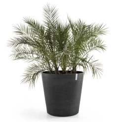 Mit dem Pflanzgefäß ‚Amsterdam‘ begrünen Sie Innenräume oder den Außenbereich auf eine stilvolle und zugleich nachhaltige Art. Dieser Pflanztopf mit Rollen aus dem Hause Ecopots präsentiert sich in angesagtem Dunkelgrau und scheint aus Trendmaterial Beton gefertigt zu sein. Jedoch besteht ‚Amsterdam‘ aus recyceltem Stein- und Kunststoffpulver, das den Pflanztopf frostfest und bruchsicher macht.