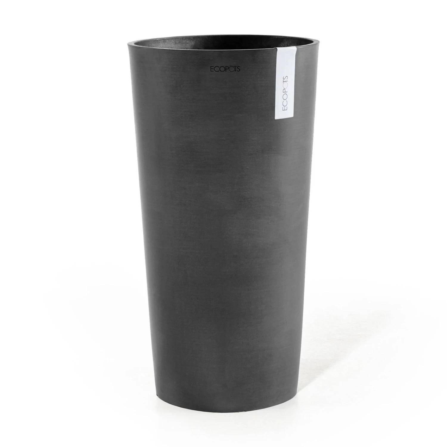Das Pflanzgefäß ‚Amsterdam Midi‘ in elegantem Dunkelgrau sieht nicht nur trendy aus, sondern besteht auch aus einem zeitgemäß nachhaltig hergestellten, recycelten Stein- und Kunststoffpulver. Das Material verleiht dem Pflanztopf ‚Amsterdam Midi‘ von Ecopots eine angesagte Betonoptik und ist außerdem bruch- und frostfest.