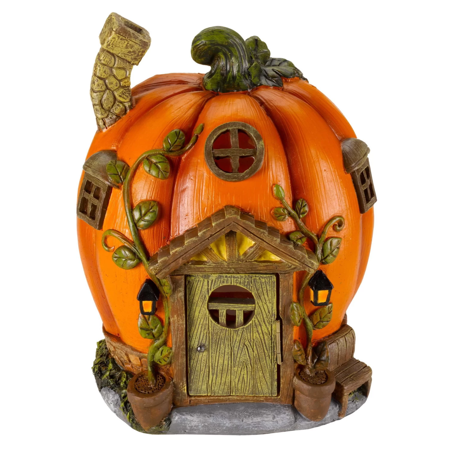 Solar-Häuschen „Kürbishaus“ In Orange-Schwarz Aus Polyresin, Maße H 25,5 Cm