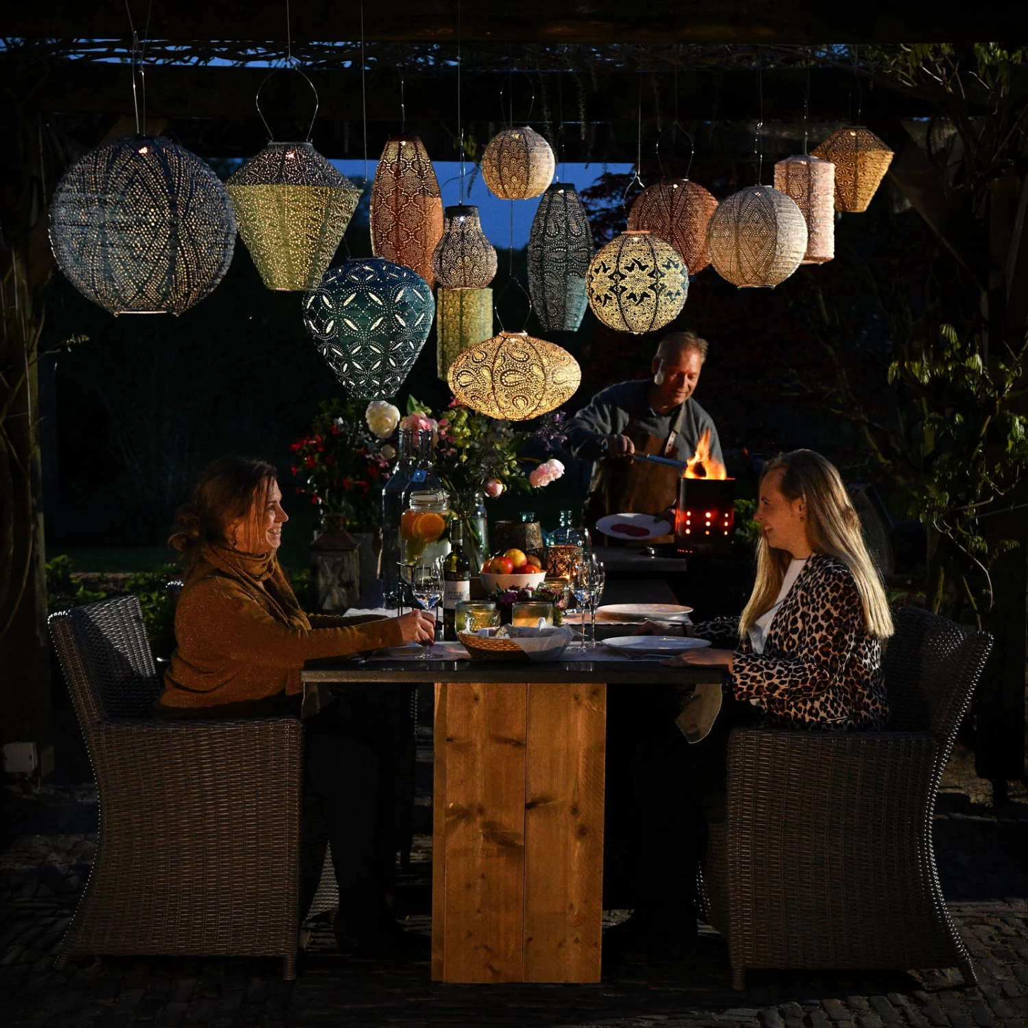 Die Solarlaterne ‚Round 20‘ in einem hellen Taupe-Farbton hat die Maße 20 x 18 cm. Deshalb passt sie an viele Orte im Garten, wo sie schöne Lichtmuster erzeugt. Da sie zusammenfaltbar ist, lässt sie sich leicht transportieren. Dank des stabilen Materials Tyvek R1443 PU, 43 g/qm ist die Laterne widerstandsfähig und langlebig.