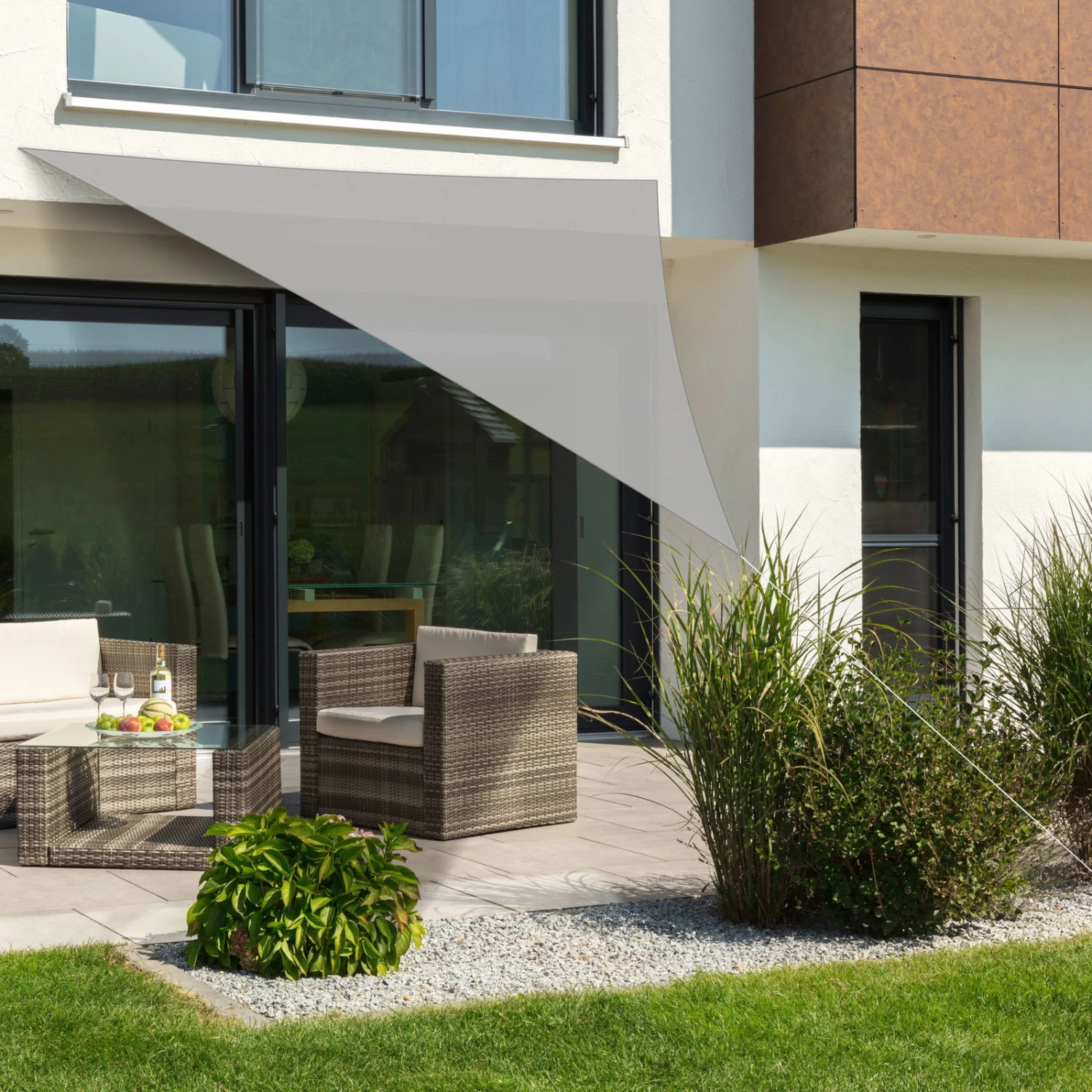 Setzen Sie das Segel, um während eines glühend heißen Sommertages in einer schattigen Oase zu entspannen. Das dreieckige Sonnensegel Teneriffa von Schneider Schirme aus strapazierfähigem HDPE-Gewebe ist wasserabweisend, lichtecht und reißfest. Sie erhalten dieses Sonnensegel inklusive Befestigungsringe aus Edelstahl und passender Befestigungsseile.