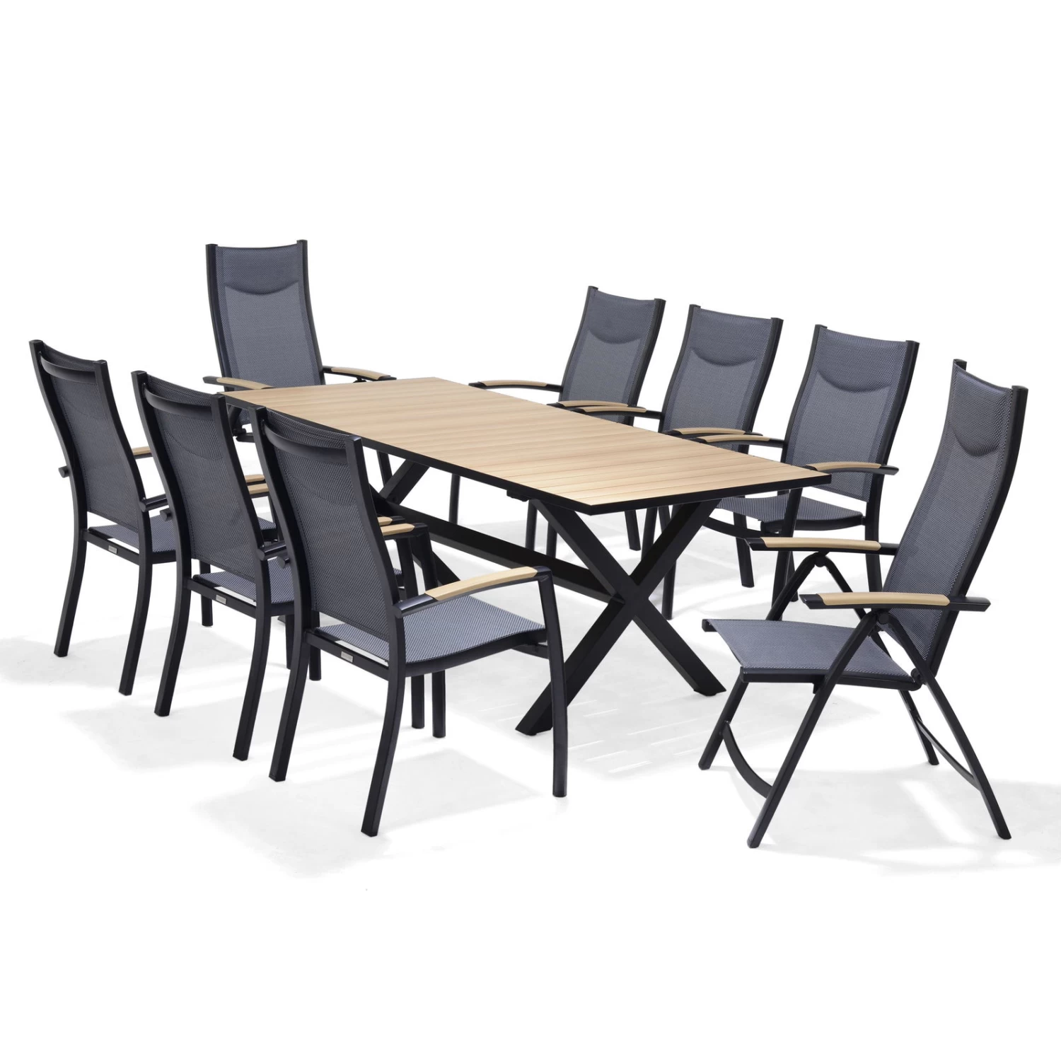 Genießen Sie mit dem Stapelsessel ‚Panama‘ maximalen Komfort im Außenbereich und werten Sie Ihre Dining-Landschaft auf eine stilvolle Art auf. Dieser schwarze Stapelsessel ist dank seines Alu-Gestells ein mobiles Leichtgewicht und überzeugt zugleich mit hoher Stabilität in Kombination mit maximalem Sitzkomfort. Nach dem Saisonende stapeln Sie den Sessel ‚Panama‘ auf Ihrer Terrasse oder im Schuppen platzsparend auf.